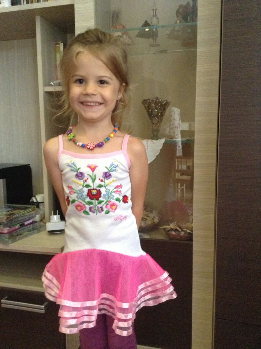 Nemrégen újra lehetőségünk nyílt egy apró, csodálatos kislánynak örömet szerezni, ami büszkeséggel tölt el minket. Gyönyörű kislányhoz gyönyörű ruha illik, éppen ezért egy egyedi, névre szóló kis ajándékkal lepte meg édesanyja Zselykét, aki minket tisztelt meg ezzel a szép kihívással. Köszönjük neki, hogy mi alkothattuk meg kislánya számára ezt a meglepetést.